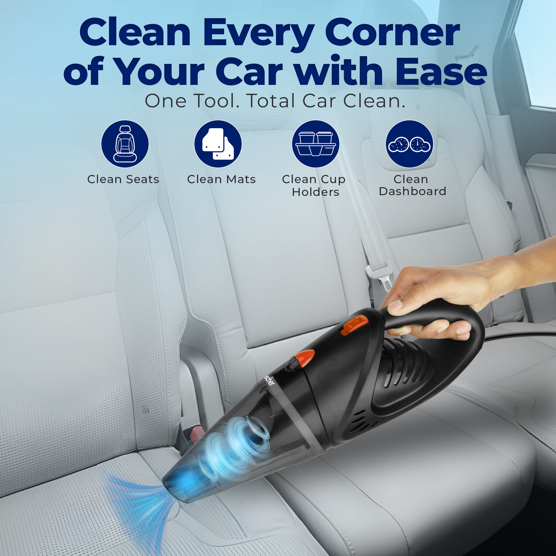This portable car dust cleaner has a motor that's rated at 140 watts and an independently sealed metal fan, allowing it to clean the entire vehicle of all the dust, debris, and hair from your pets that has accumulated over time. It has powerful suction force of 3500 PA so that you can efficiently clean the regions of your vehicle that are tough to access.
