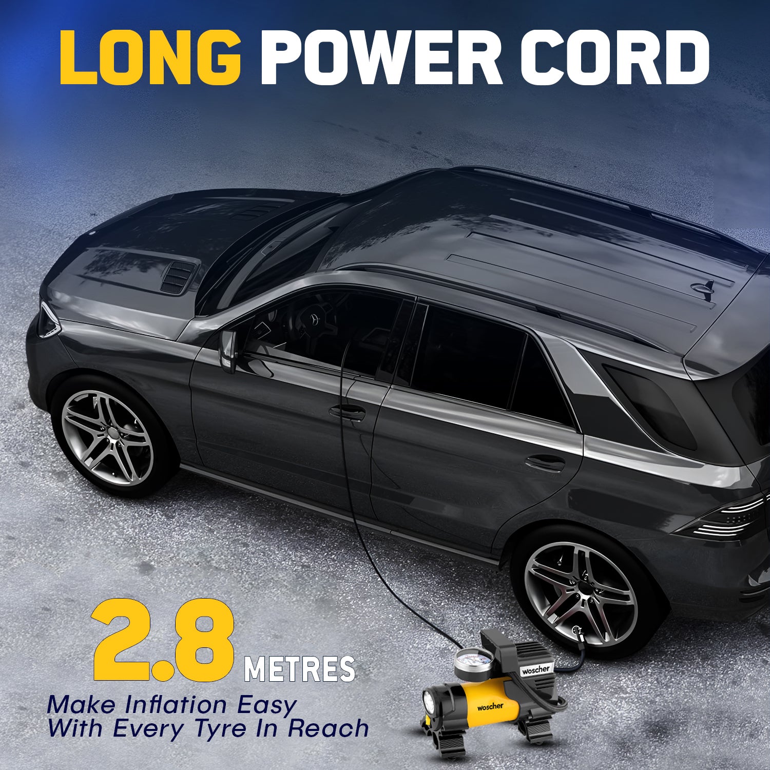 Very powfull heavy duty inflator. Working flawlessly. I have another tyre inflator for my other car which comes from maruti genuine accessories. But There is no comparison with woscher. Received yesterday and tried to inflate one of the tyres. It inflates very quickly in comparison to maruti inflator..fully satisfied with product, now biggest concern is after sales sercive let's see what kind of servive woscher provides. Thank you