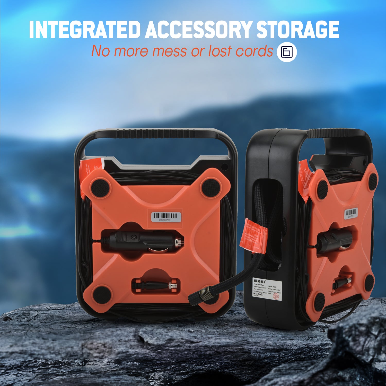 This Woscher tire inflator has a built-in led light that makes it easy to use and makes it easier to see at night. It's also great for emergencies at night.
