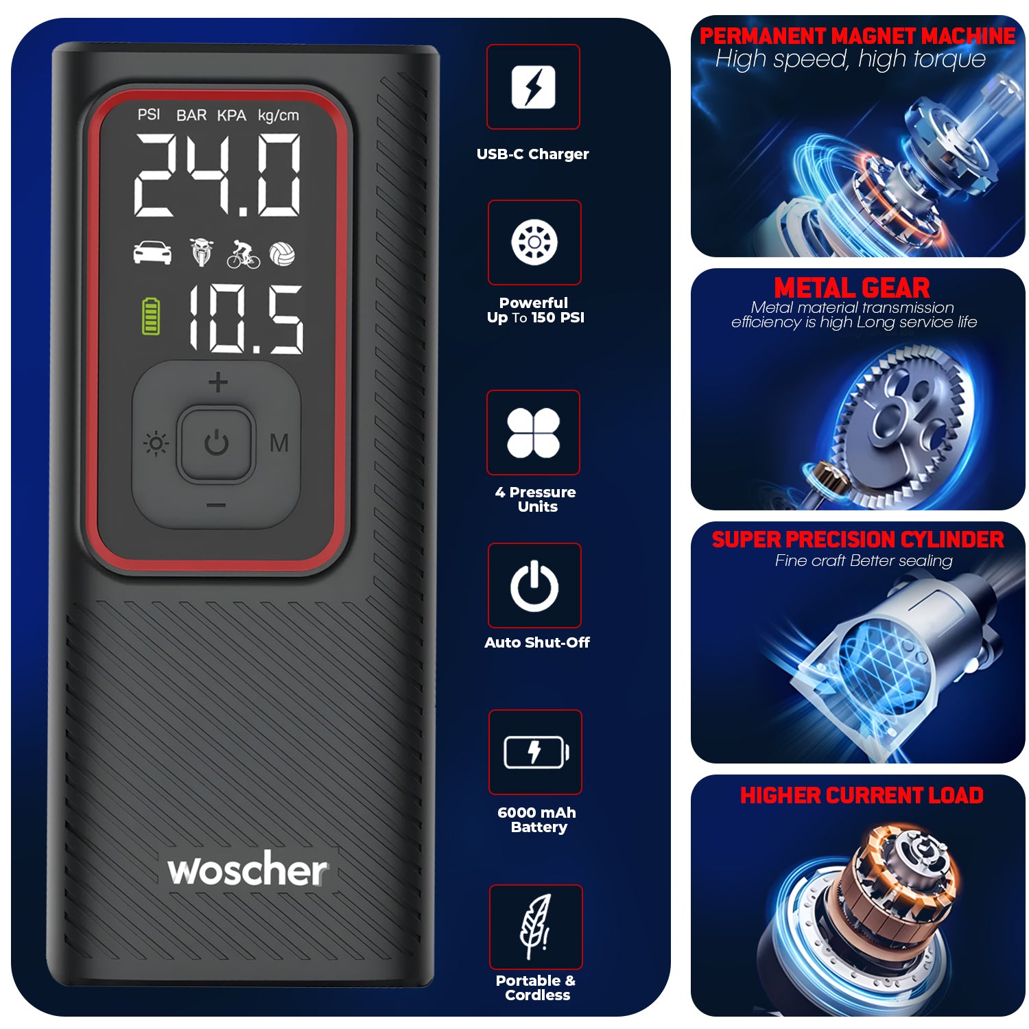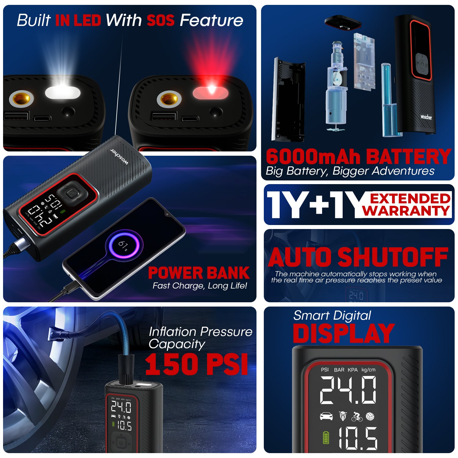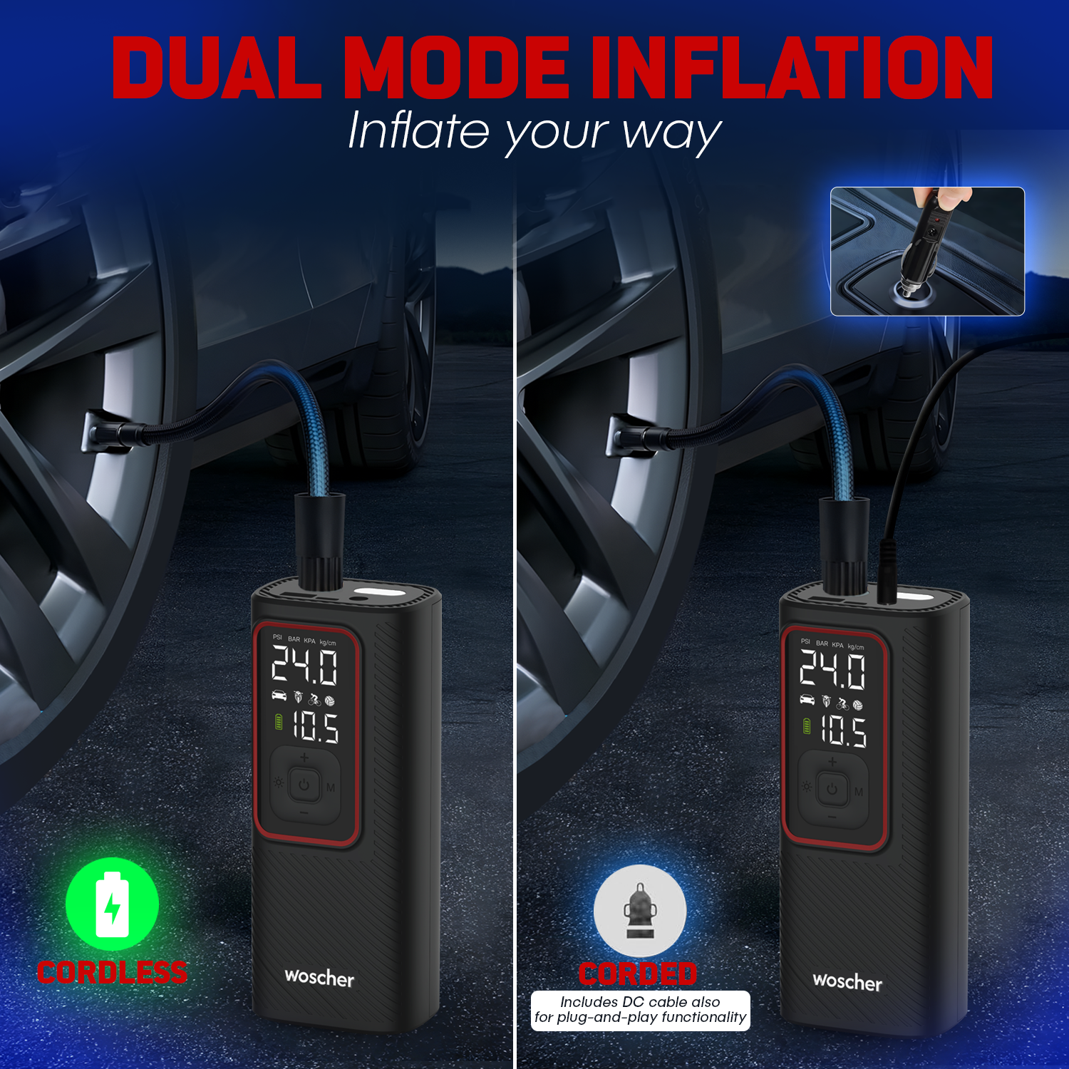 iX 2in1 Portable Tyre Inflator for Car & Bike with 150 PSI Pressure, 6000 mAh Battery, Digital Display, Pressure Detection, Air Pump Compressor for Car Tyre, Bikes, Bicycles & Balls