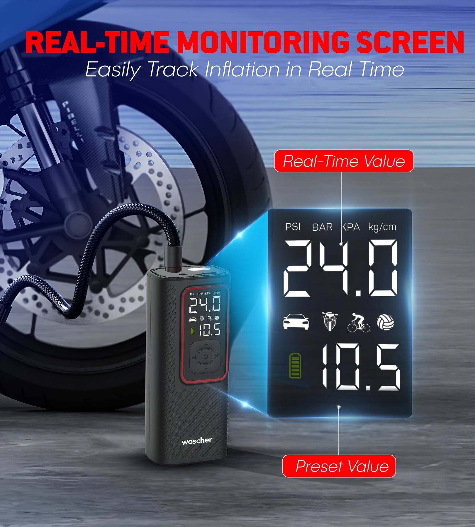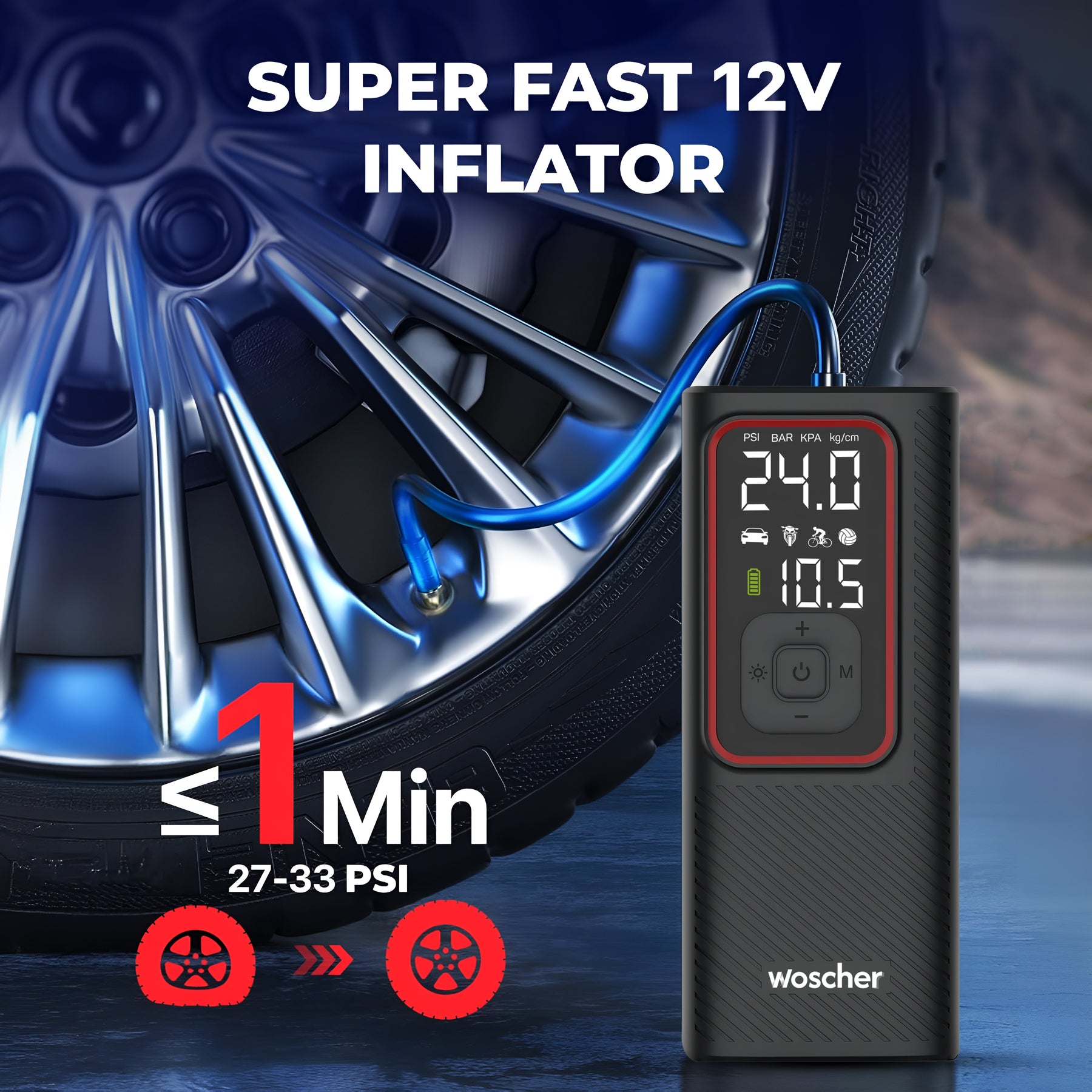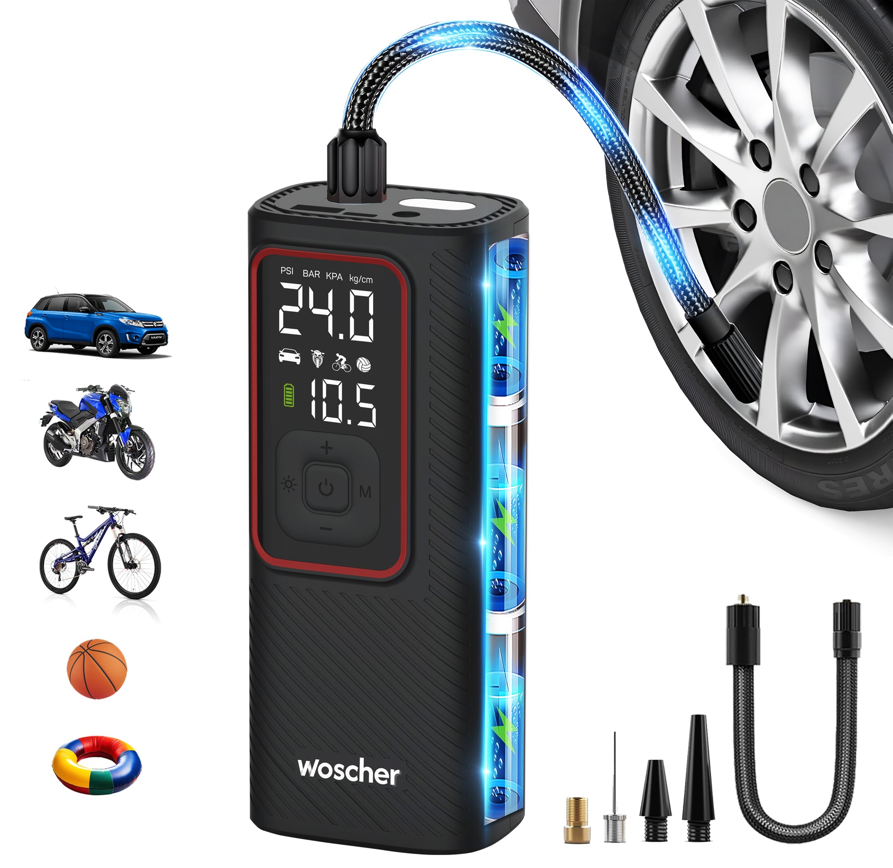 iX 2in1 Portable Tyre Inflator for Car & Bike with 150 PSI Pressure, 6000 mAh Battery, Digital Display, Pressure Detection, Air Pump Compressor for Car Tyre, Bikes, Bicycles & Balls